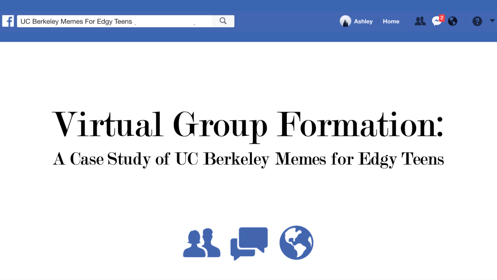 This case study uses content analysis and in-depth interviews to examine whether or not Durkheim’s theory of group formation processes being reliant on common group morals, universally understood totems, and collective effervescence discussed in The Elementary Forms of Religious Life are present in a virtual, secular community such as UC Berkeley Memes for Edgy Teens (UCBMFET)—currently at a member count of over 160,000. Through these methods, I find strong evidence for the presence of common morals and norms of conduct, strong evidence for the presence of commonly understood symbols, and partial evidence for the presence of collective effervescence within the community. I discuss the evidence for each of these phenomenon as well as the limitations to the measuring of collective effervescence because of the experience of this phenomenon that is physical and thus not represented within a virtual community.
